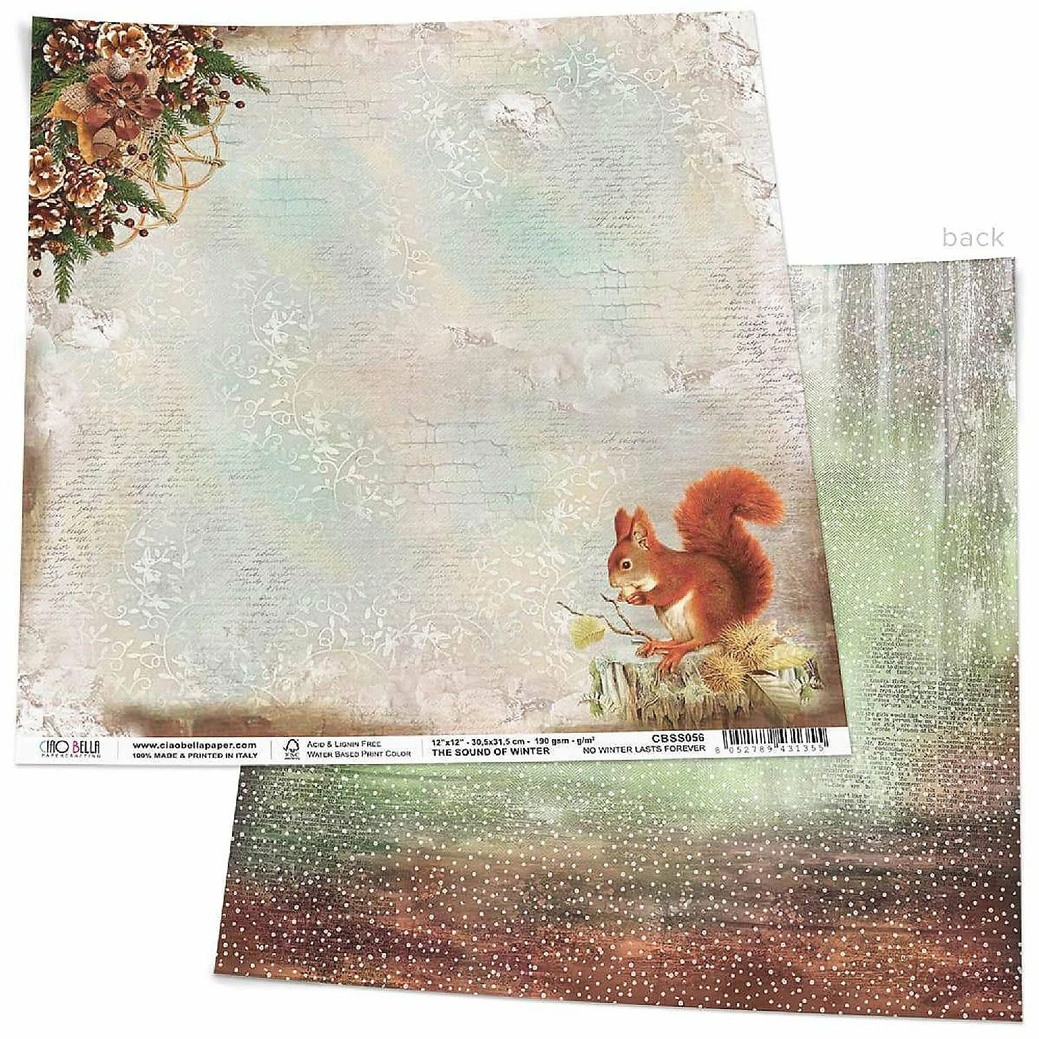 Ciao Bella No Winter Lasts Forever Paper Sheet 12″x12″ What’s your favorite sound of winter? The muffled sound of the snow that settles on the ground? The crackling of the wood in the fireplace? Distant noises into the woods? The wind blowing outside the window? This collection translates sounds and noises of the most magical season of the year into images, using warm dark green, white and brown nuance, perfect for winter projects and romantic cards. In scrapbooking industry, Ciao Bella paper collections are about Italian high quality. They feature versatile patterns and styles, perfect for a variety of applications. Great original illustrations and color palettes, often bold and unconventional, have been thought out in details to get the most from any sheet. All of the lines are printed in Italy with organic inks on forest-friendly certified paper by a carefully selected team of professionals specialized in traditional printing Italian skills. 12×12 inches (30,5×30,5 cm) double-sided printed sheet 2 designs; includes on one side Wintry images of a squirrel eating a nut in one corner and pinecones and pine branches in an other corner and on the other side is a snowy landscape Paper Arcoset Fedrigoni 190 gsm high quality, FSC Forest friendly certified Acid & lignin free, heavy metal absence, chlorine free Designed and Made in Italy