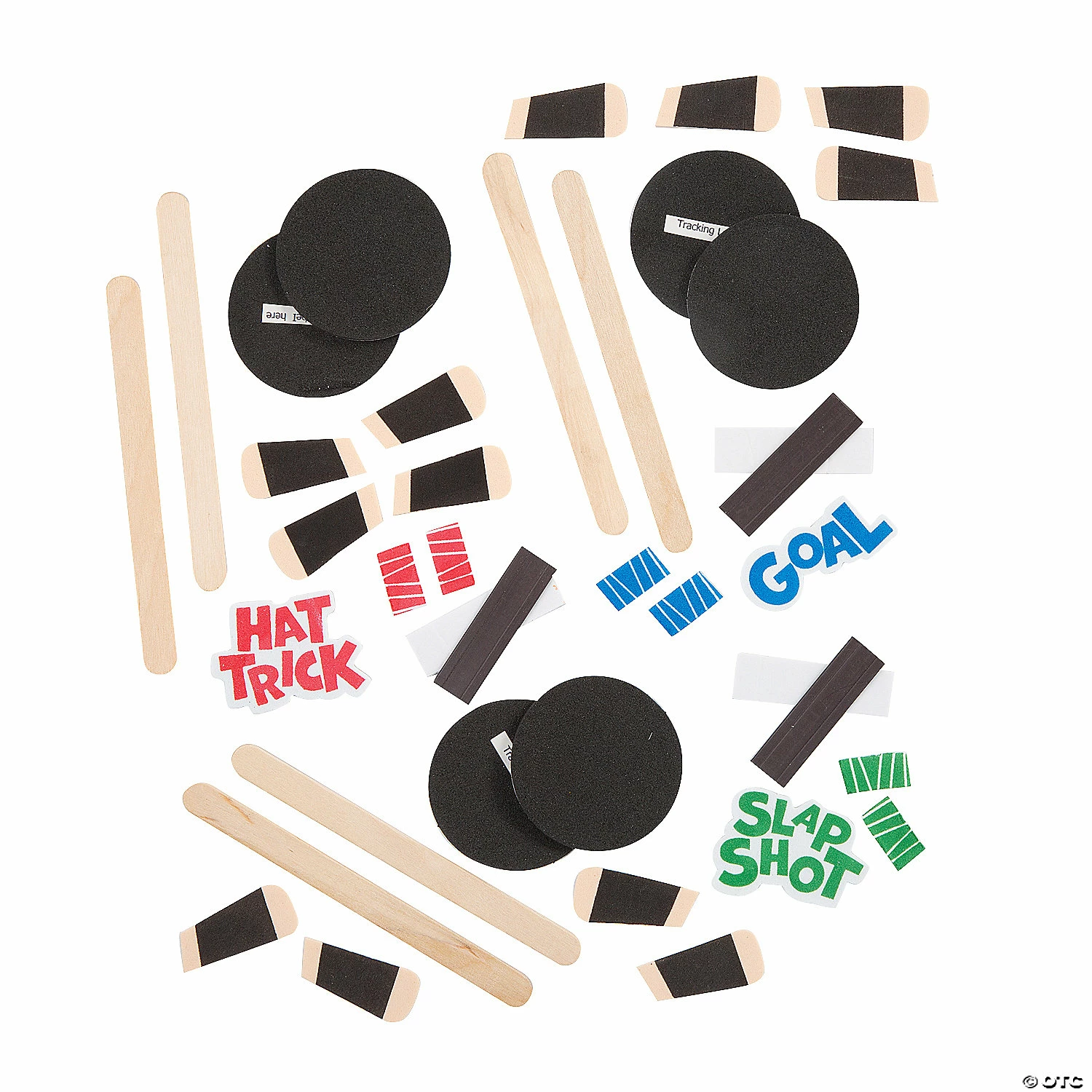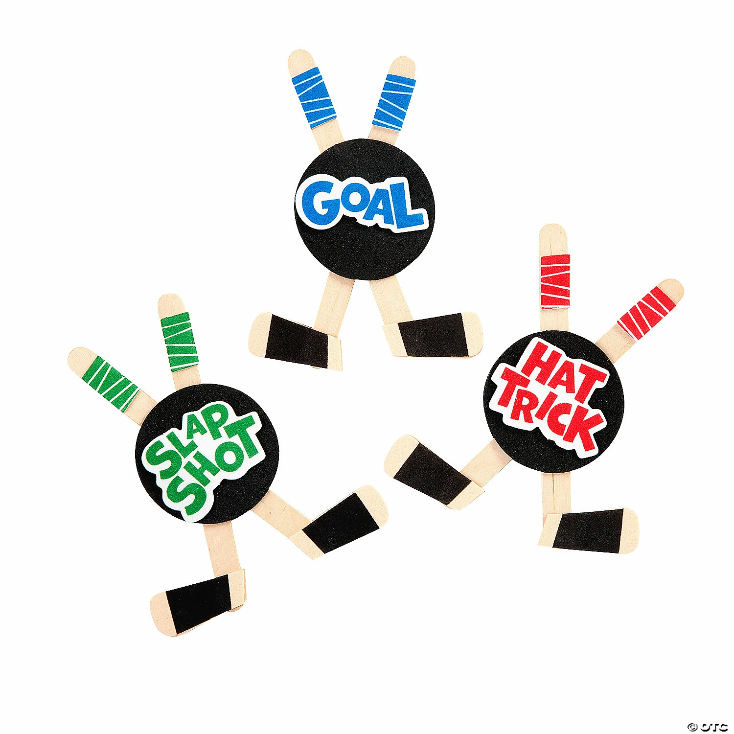 When your goal is to keep kids creative and entertained, look no further than these fun craft kits! Featuring hockey sticks and hockey sayings like βslap shotβ and βhat trick,β this 12-pack of crafts makes a great birthday party activity or classroom craft. Includes self-adhesive foam pieces and wooden craft sticks. 3 3/4″ x 4″ Makes 12. All craft kit pieces are pre-packaged for individual use. Magnets are packaged separately. Do not discard. Kits include instructions. Β© OTC