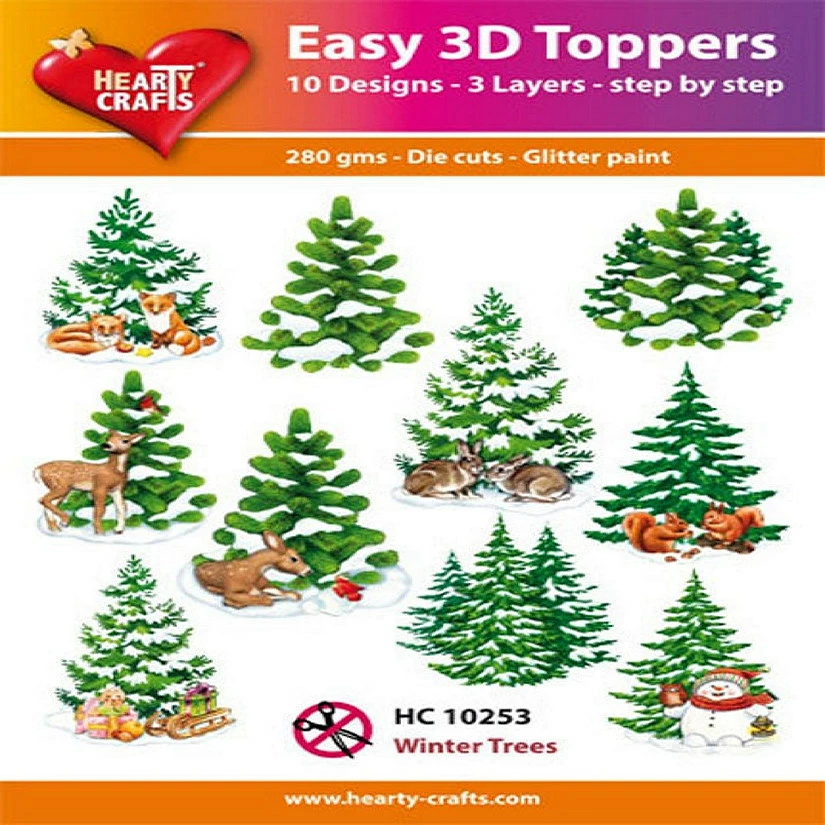 Easy 3D – Winter Trees 10 Designs 3 step-by-step die cut layers for each design. Each design has individually packaged pieces. This set includes images of 10 snowy trees some with woodland animals. You will love that each 3D Topper is a different image with accents of glitter paint on each layer. Sizes are approx. 4″ x 4″ 280 gms