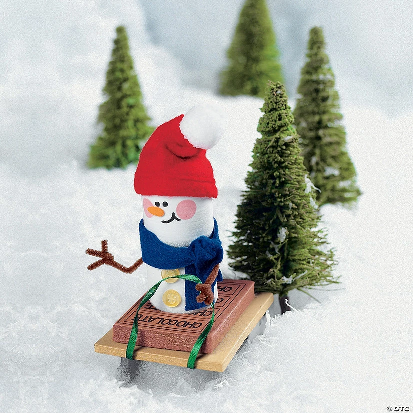 These cute foam ornaments can hang on a Christmas tree or sit on a table as part of a snowy winter scene! Frosty and fun, these marshmallow snowman ornaments make a great craft activity for a classroom Christmas party or other holiday school event. Kids love creating homemade gifts! We recommend a hot glue gun for best results. 5 1/2″ All craft kit pieces are pre-packaged for individual use. Kits include instructions and extra pieces. ยฉ OTC