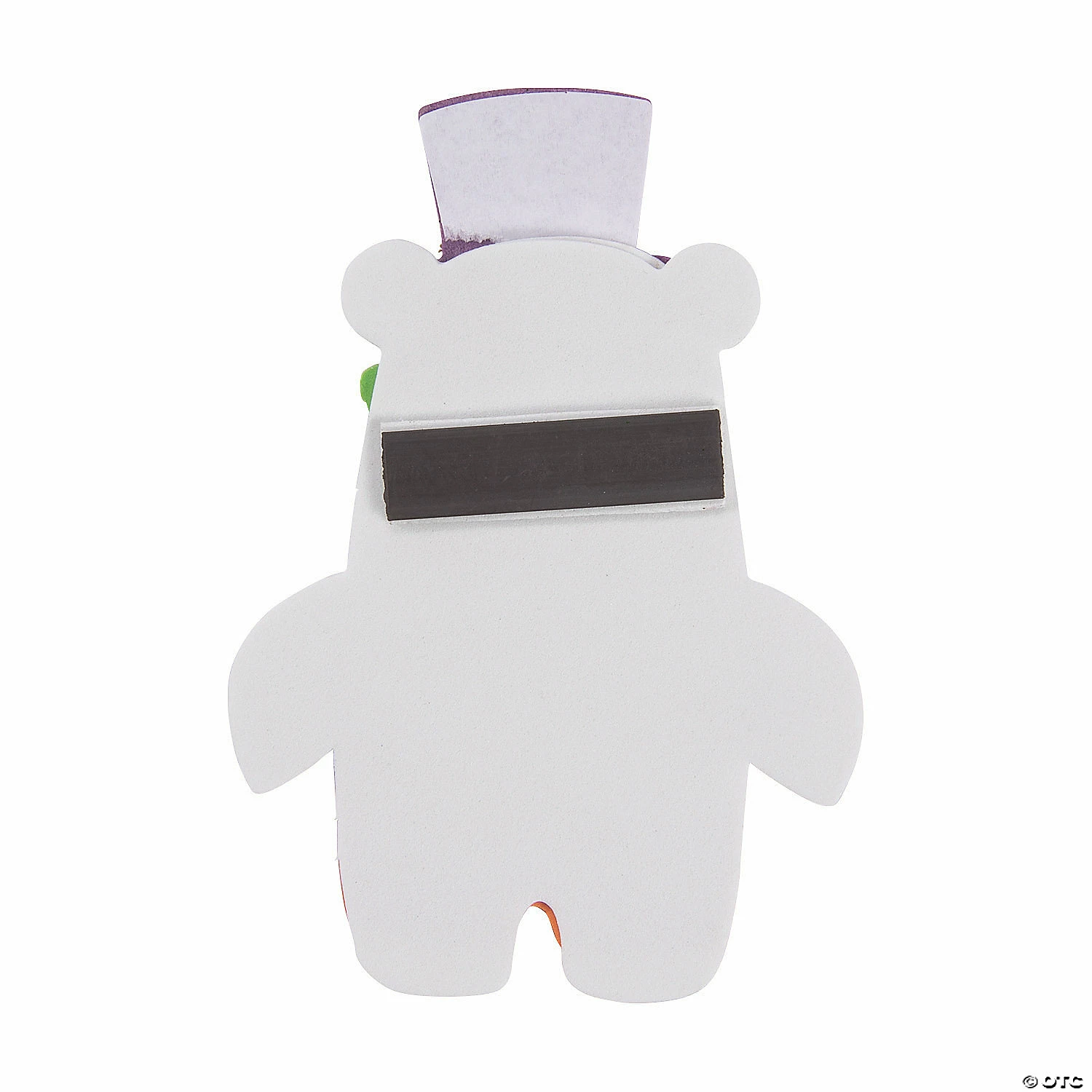 Prepare for a polar party! An un-bear-ably cute addition to kidsβ crafts, these arctic animals come sporting silly outfits like bowties, hula skirts and more. Little ones of every age will love bringing to life their own bear buddy and then displaying as seasonal dΓ©cor during the colder months. Includes self-adhesive foam pieces. 3 1/2″ x 4″ Makes 12. All craft kit pieces are pre-packaged for individual use. Magnets are packaged separately. Do not discard. Kits include instructions. Β© OTCSilly Polar Bear Magnet Kit Instructions
