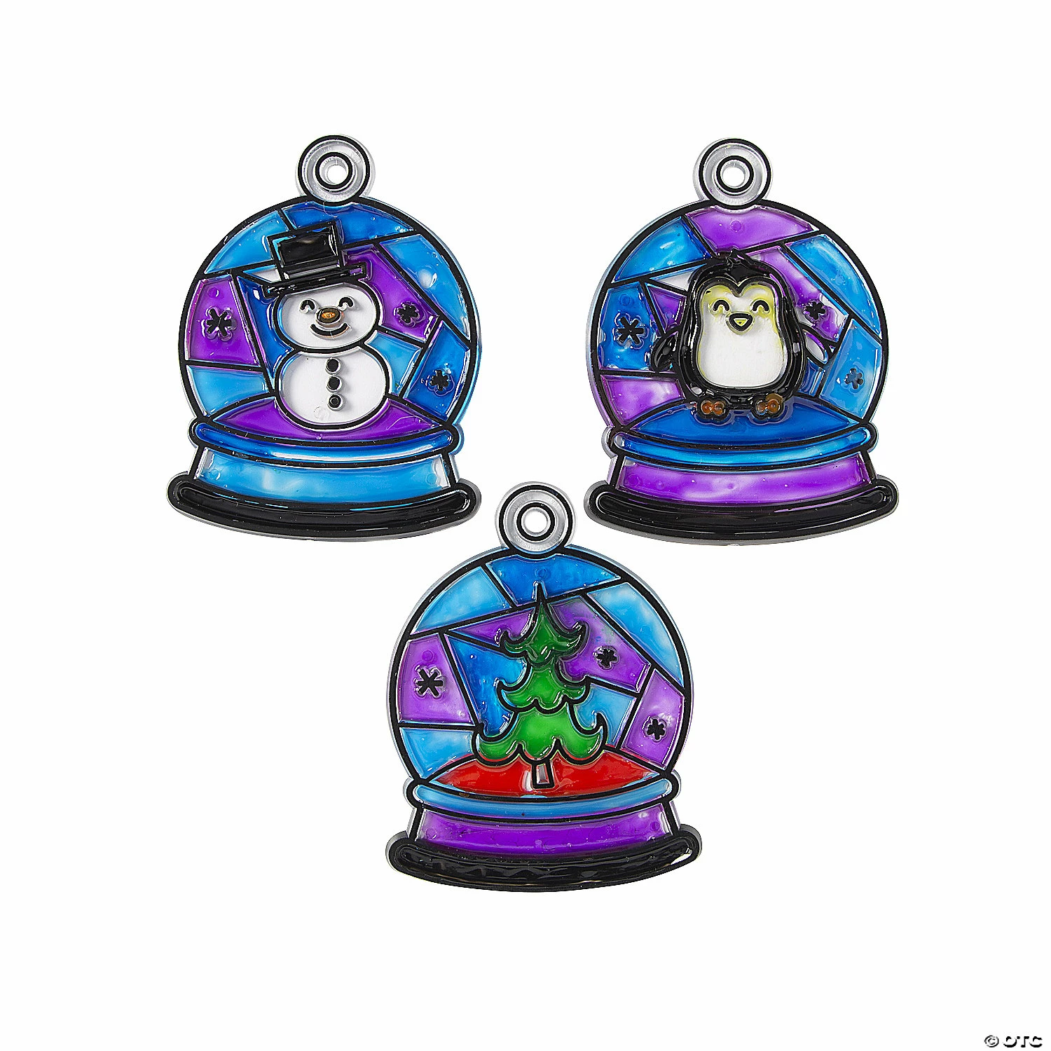 Get into the winter spirit with these cute suncatchers shaped like snow globes and each featuring a winter character. A smiling snowman, a happy penguin and a Christmas tree make great snow globe characters for these suncatchers. This fun winter art activity is great for the classroom or as a fun boredom buster during winter break. Plastic. (2 dozen per unit) 3 1/4″ x 4 1/4″ Suncatcher paint sold separately on this website. © OTC