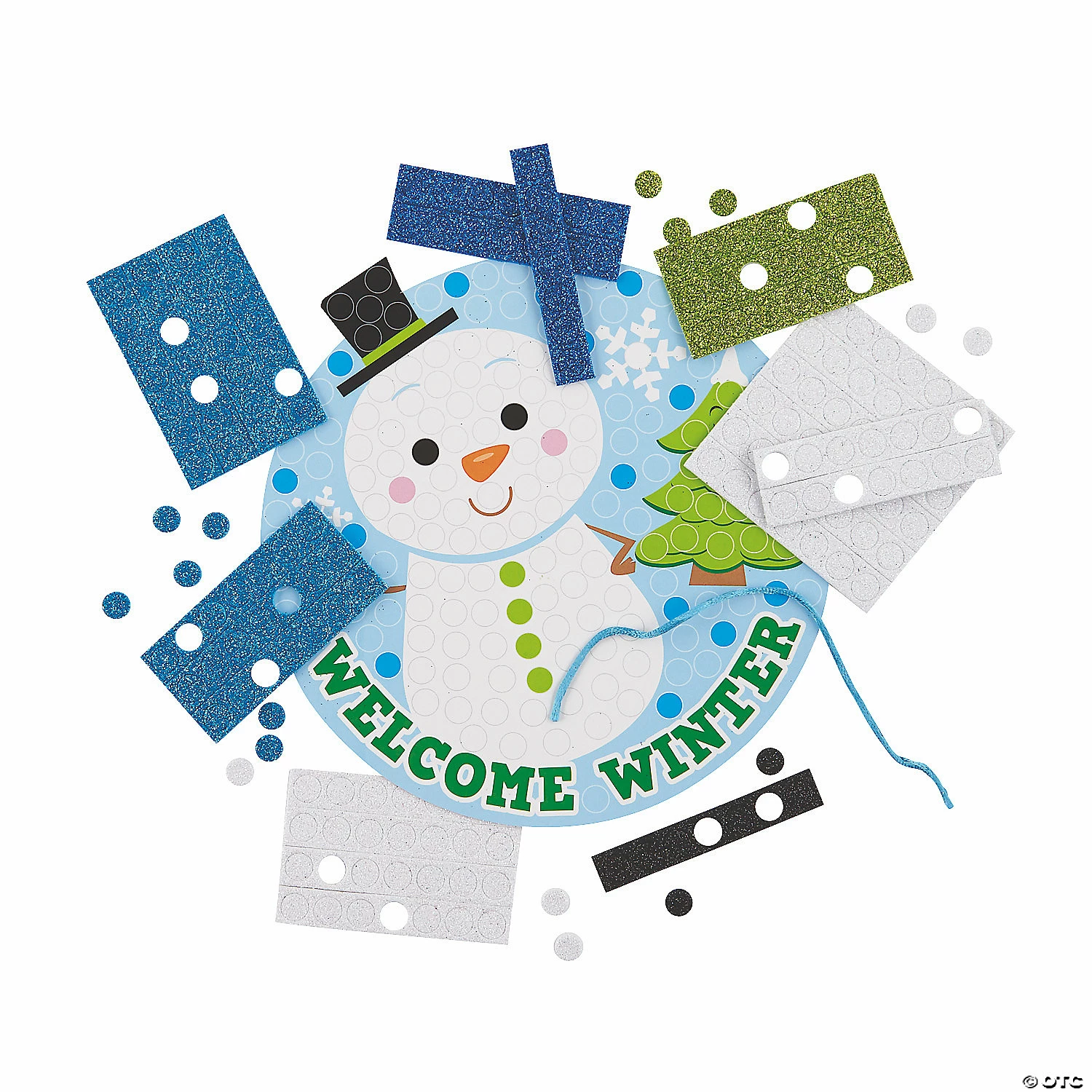 This sparkling mosaic craft kit is a wonderful activity for those snowy, cold winter days! Easy for little fingers to construct, these signs are a cute way to decorate for Christmas and make a fantastic classroom project. Deck the walls – and the door – in glittering snowmen! Includes self-adhesive foam pieces and satin cord. 8 1/4″ Makes 12. All craft kit pieces are pre-packaged for individual use. Kits include instructions and extra pieces. ยฉ OTC