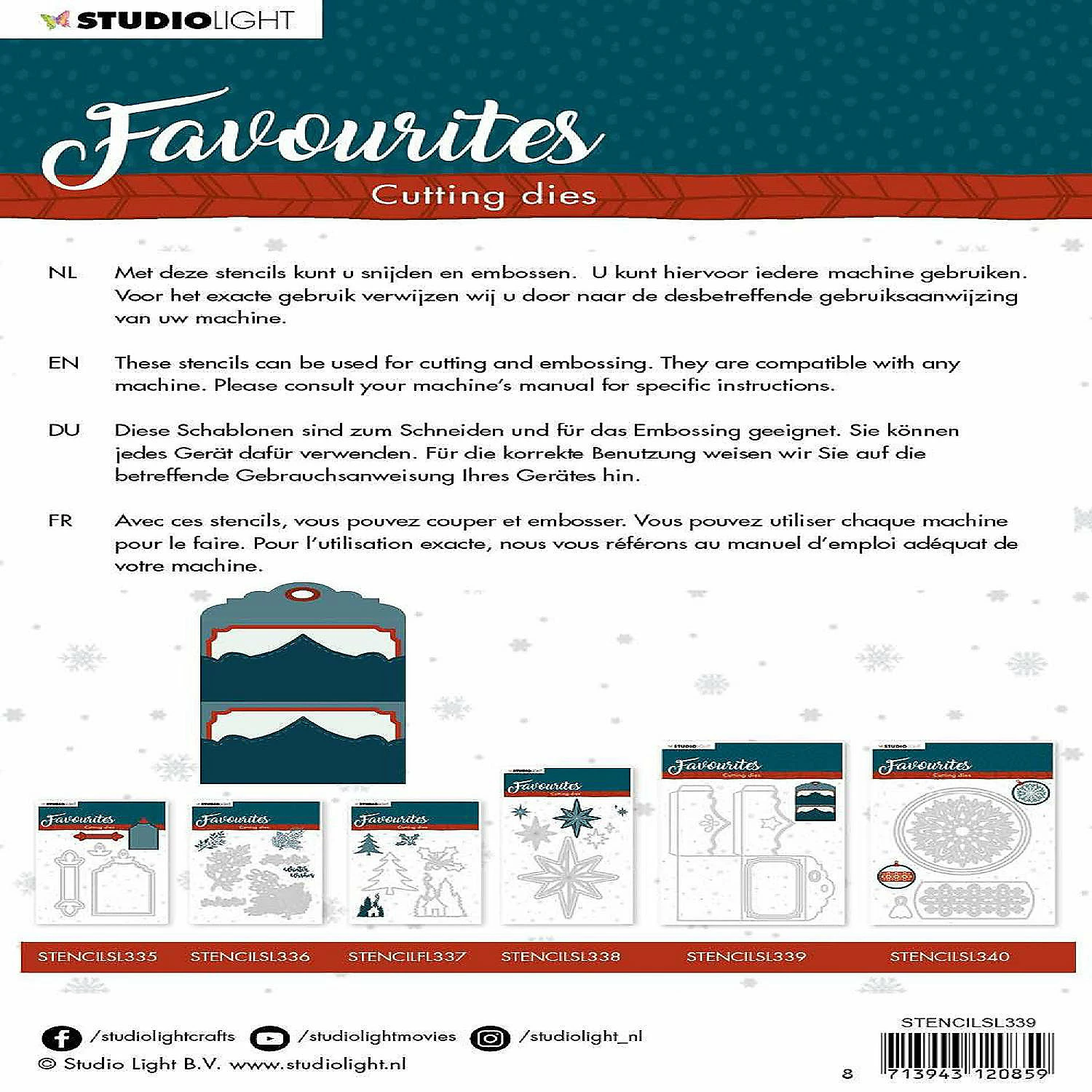Studio Light Cutting Die Winter’s Favourites 160x250mm nr.339 Use this die to create a tag with 2 pockets that you can use to include a special message. Great for Christmas gifts. Size: 6.3 x 9.8 inches
