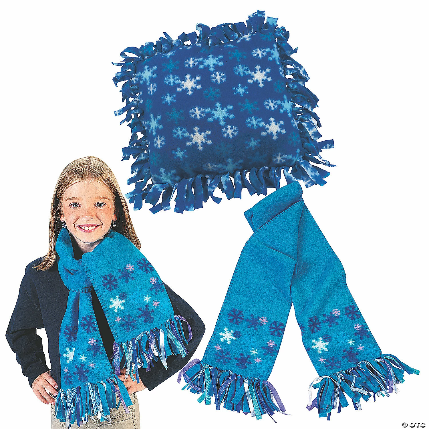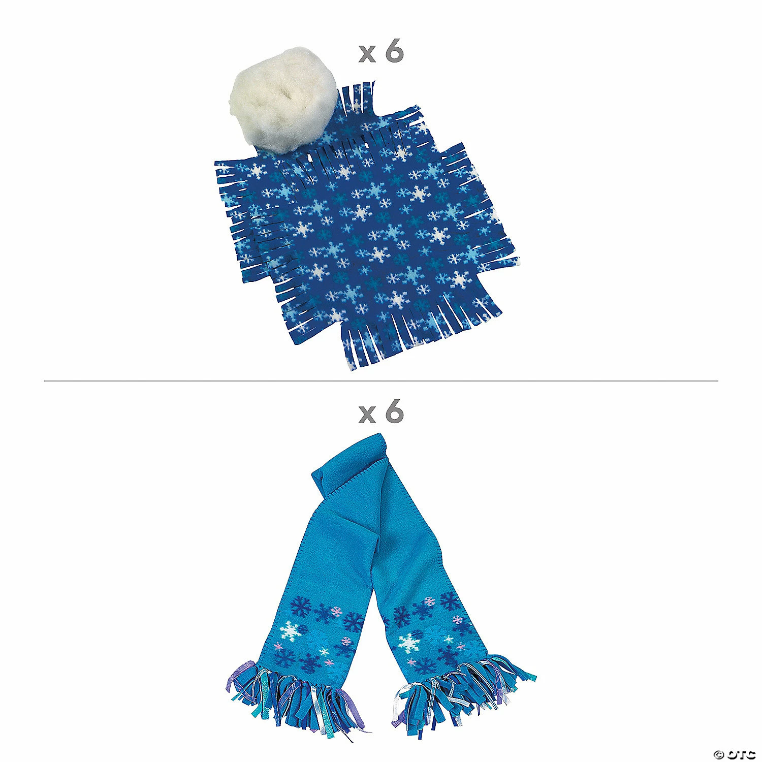 Keep warm this winter with these cozy crafts! This convenient kit includes an assortment of fun fleece projects and is the perfect boredom buster to use during winter break or as activities for the classroom and holiday parties. Once assembled, kids will love giving these homemade items as Christmas gifts or they can use them at home! Makes 12. All craft kit pieces are pre-packaged for individual use. Kits include instructions.Includes:โข 6 Fleece Snowflake Scarf Craft Kits (Fleece fringe is pre-cut. 60″ x 7″ Imported.)โข 6 Fleece Winter Tied Pillow Craft Kits (Fleece fringe is pre-cut. Polyester fiberfill stuffing included. Unfinished, 20″ Imported.)โข Assortments are subject to change at any time and may vary from picture shown. Substituted items will be similar in nature.